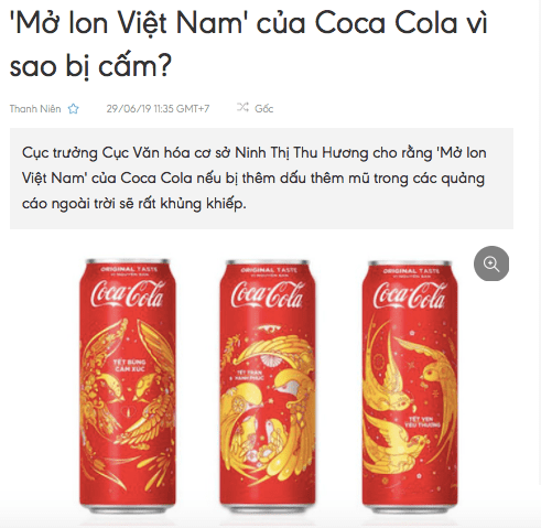 Ông lớn Coca Cola cũng đã có 1 trải nghiệm buồn ở Việt Nam khi câu quảng cáo tối nghĩa “Mở lon Việt Nam” bị bộ Văn hoá tuýt còi. Các nhà quản lý cho rằng cụm từ này không phù hợp với thuần phong mỹ tục của Việt Nam. Một thương hiệu trăm năm tuổi, gắn liền với cảm xúc hạnh phúc, sảng khoái, lại bị “dân gian” nói đùa, gắn với bộ phận dưới thắt lưng. Một tổn hại lớn cho cảm nhận thương hiệu.